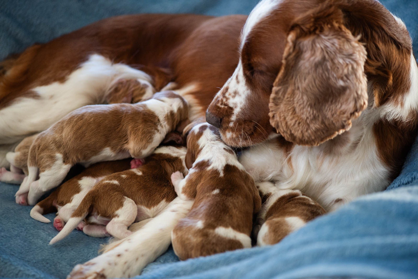 Det var en lång och otålig väntan på att finaste Tia skulle avslöja vad som gömde sig i magen. Det visade sig i måndags förra veckan att det va sex stora, härliga och välskapta valpar, fem hanar och en tik! Vi är så otroligt tacksamma över att allt gick bra och hur fint Tia sköter om de små. Vi ser så otroligt mycket fram emot att lära känna dem, redan nu upplever vi dem lugna och väldigt tillfreds med tillvaron.